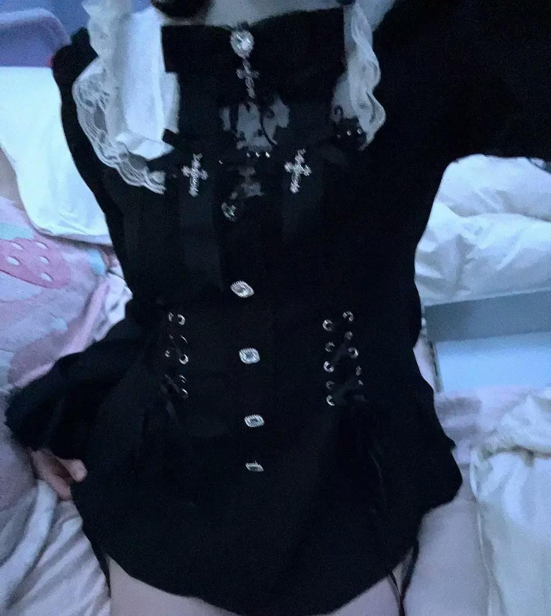 Step into a fairytale of dark cuteness with this Japanese Gothic Lolita Dress Set — featuring lace ruffles, ribbon bows, and a charming mini silhouette perfect for Harajuku, Y2K, and party aesthetics.