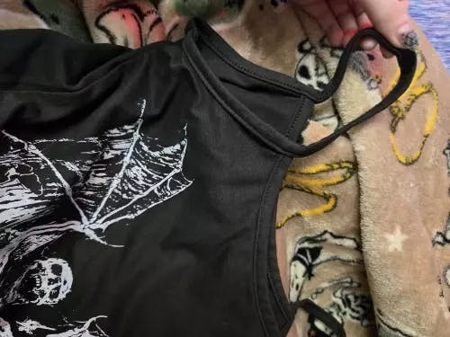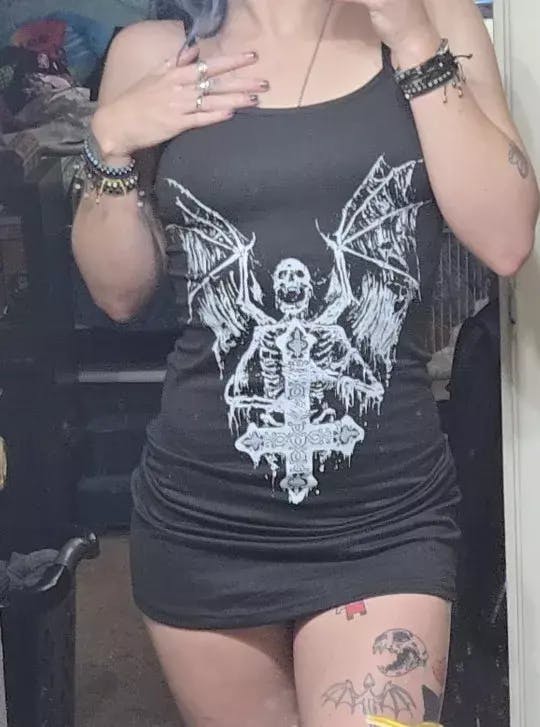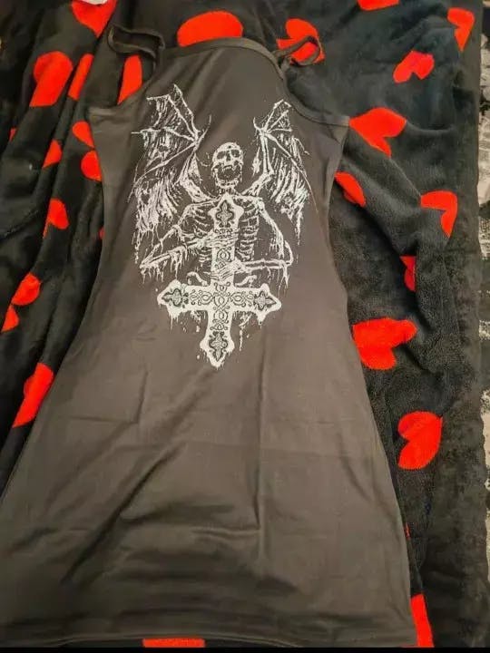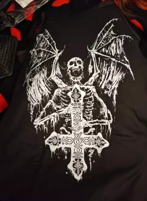 Eye-catching graphic print with Y2K, punk, and gothic influences